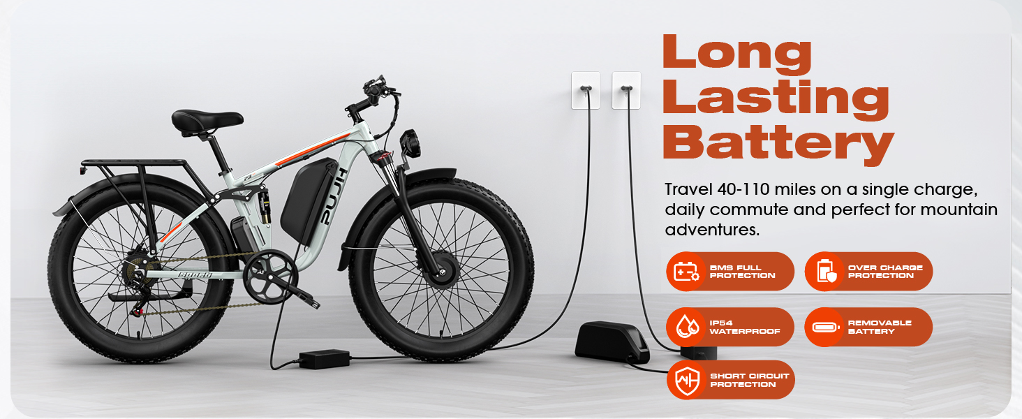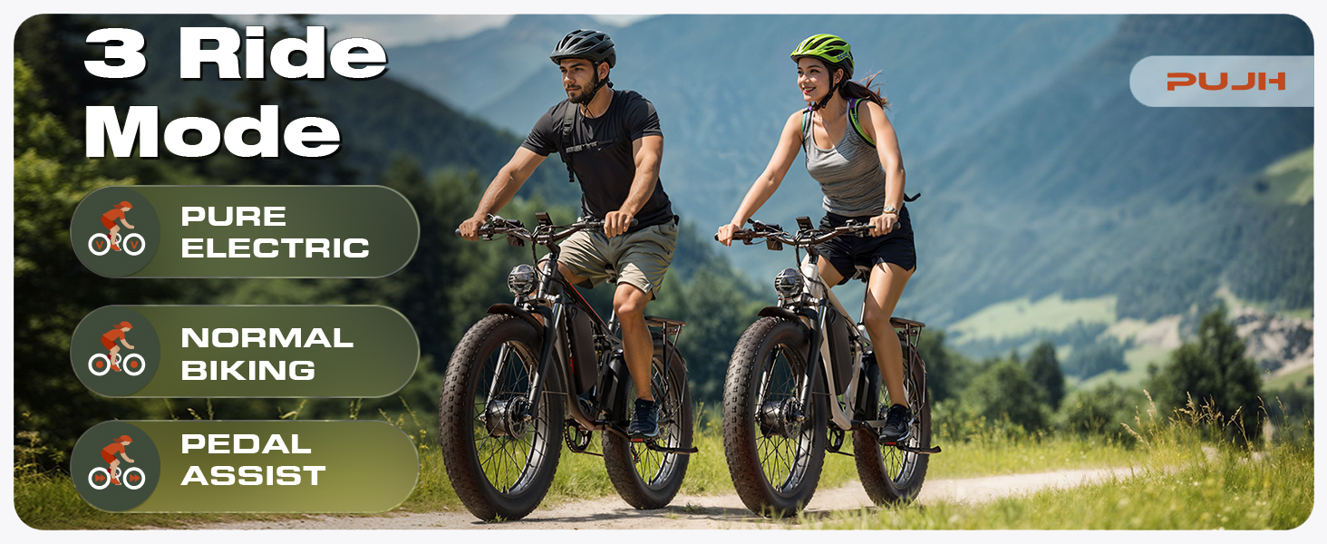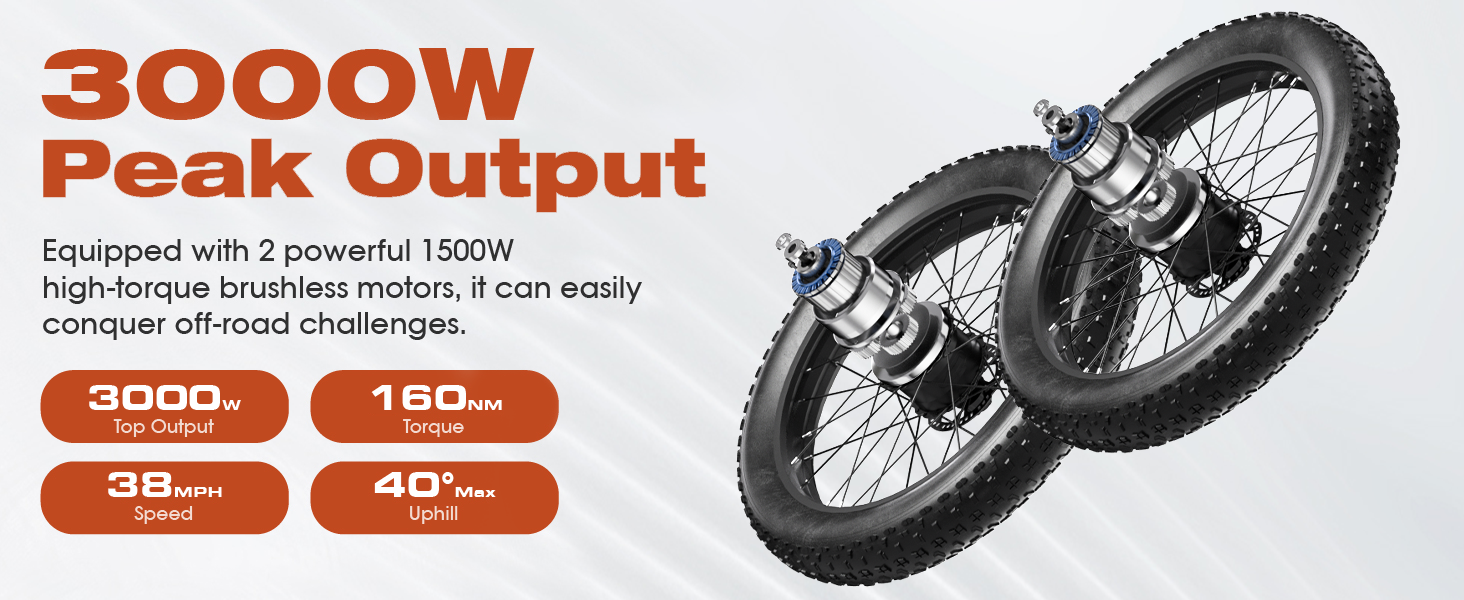 Electric Bike for Adult, 52V 25Ah Peak 3000W Dual Motor 24" Fat Tire Snow Ebike, Max 38mph 45-120Mi Full Suspension Mountain E Bicycle, Hydraulic Brake Electric Moped for Commute PU3 Pro